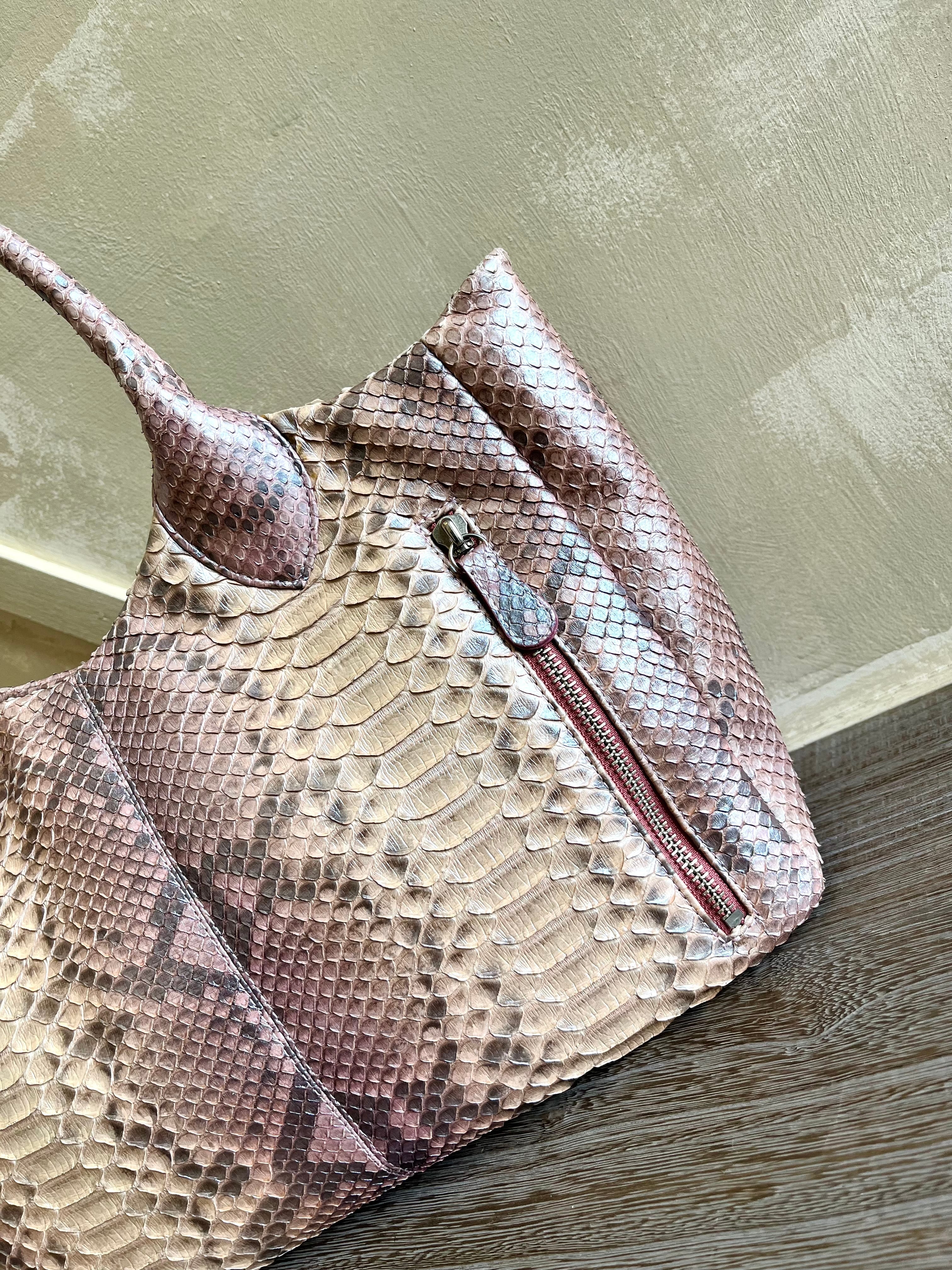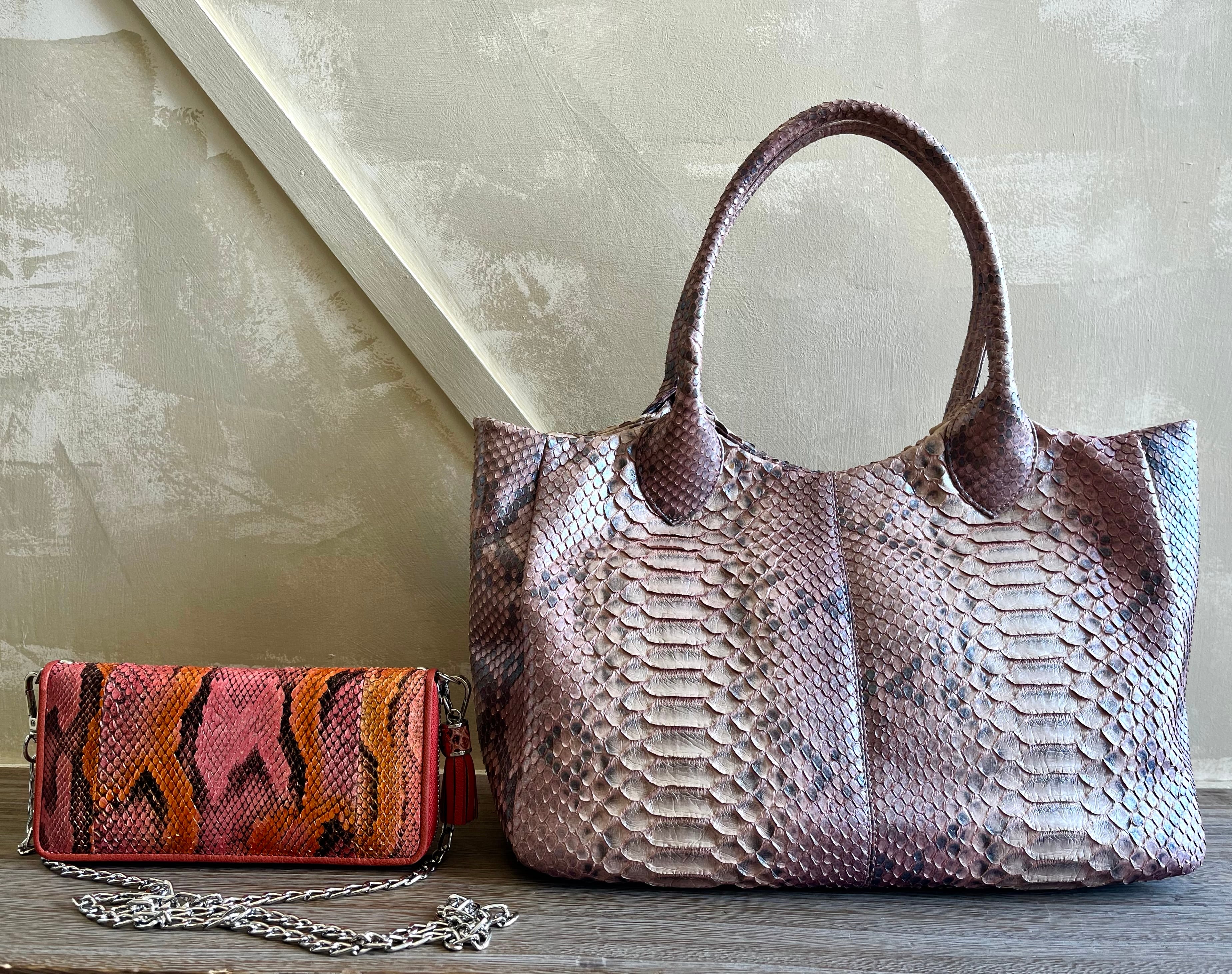 美しい模様のパイソンにグラデーション染めで2つとない仕上がり、ピンクベースですが、可愛くなり過ぎず大人の雰囲気です