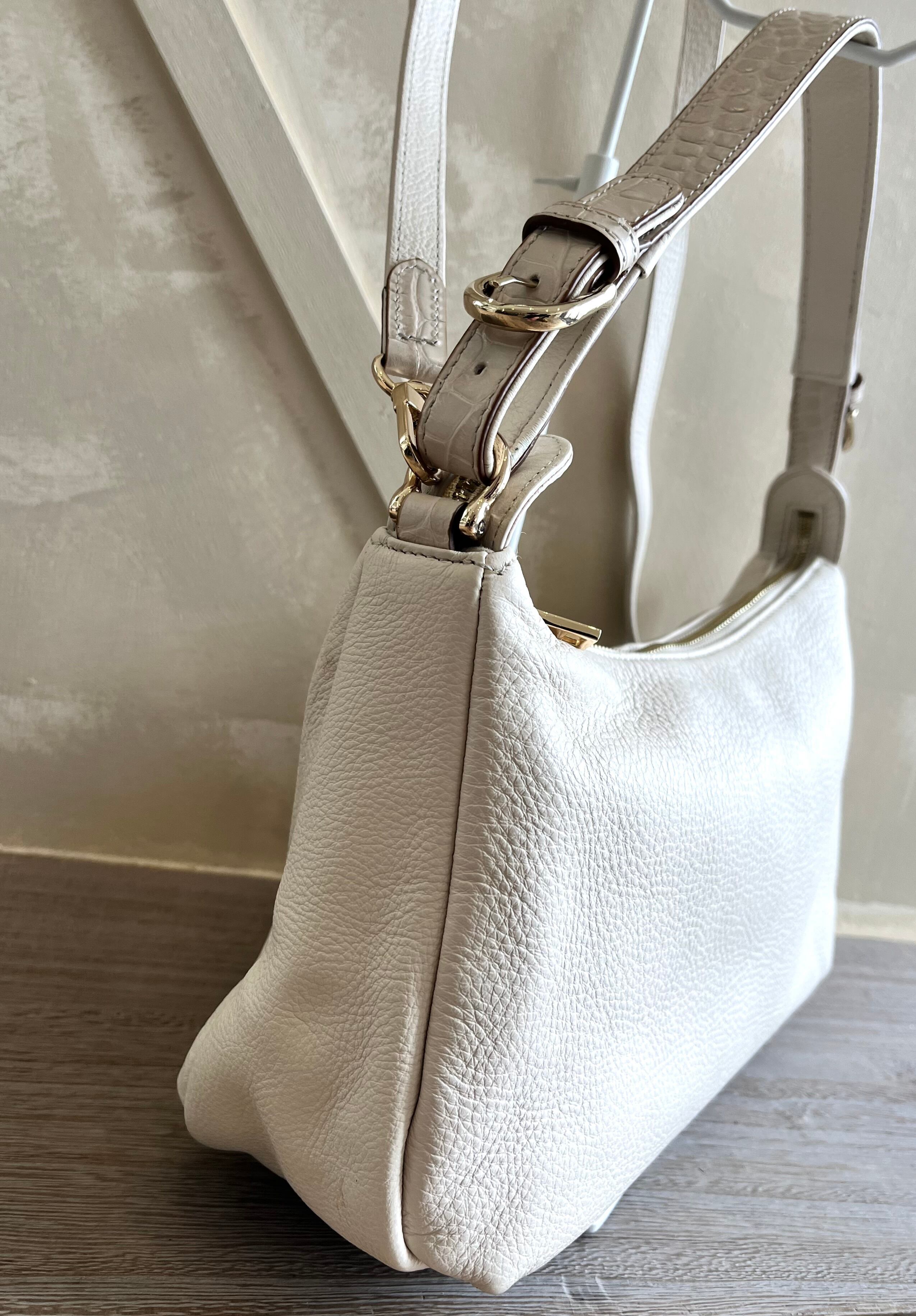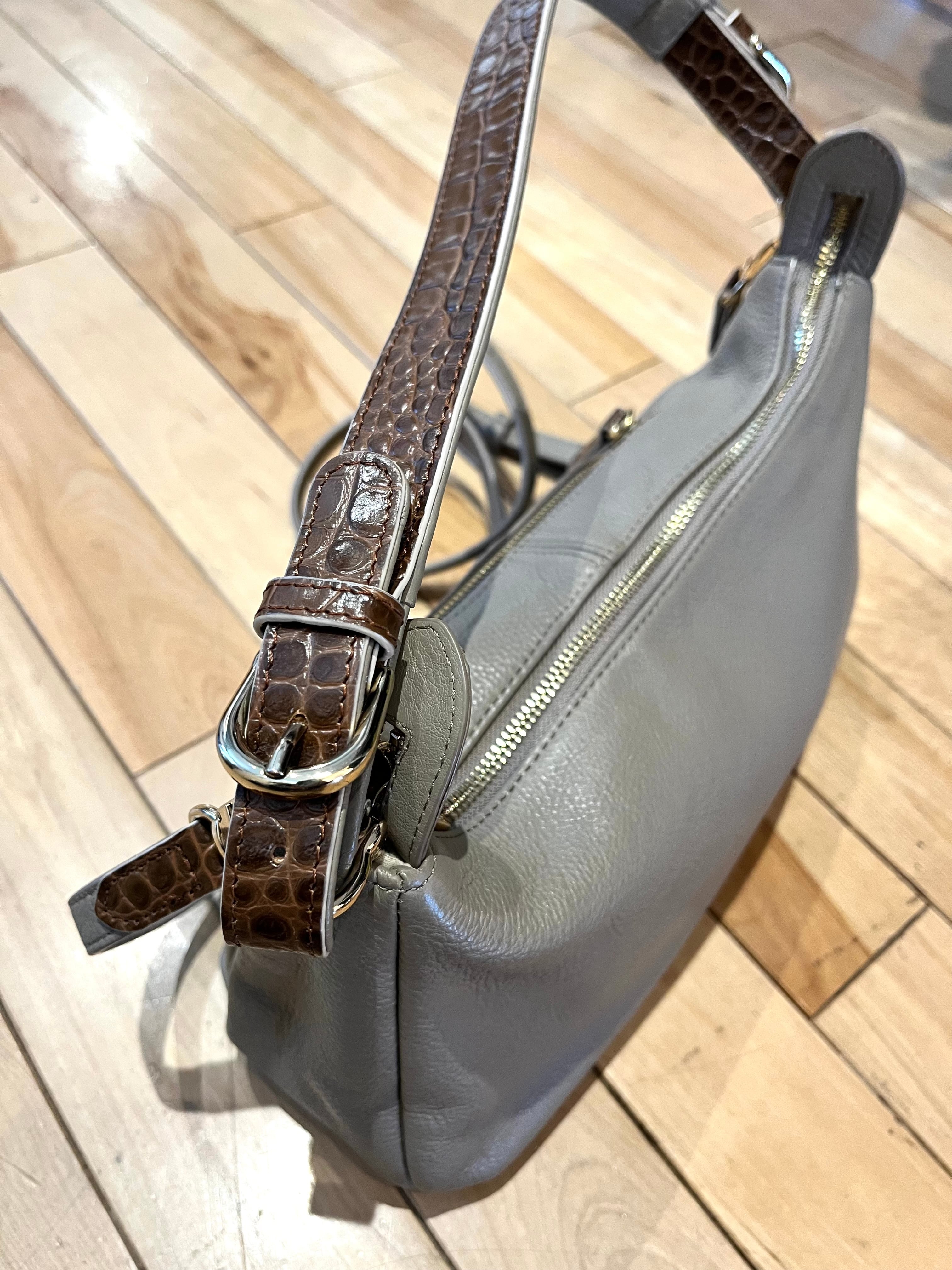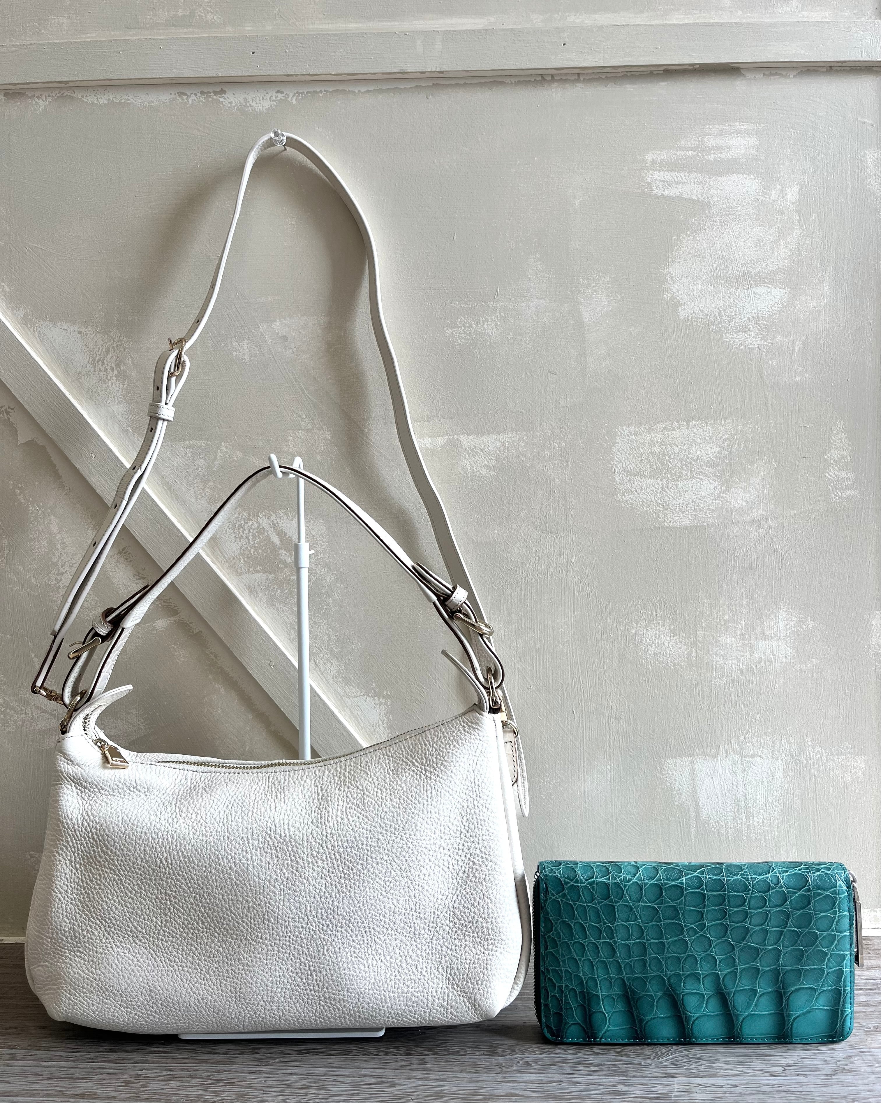 ホワイトとグレーの人気カラーが魅力のカウレザーを使用したワンショルダーバッグです。