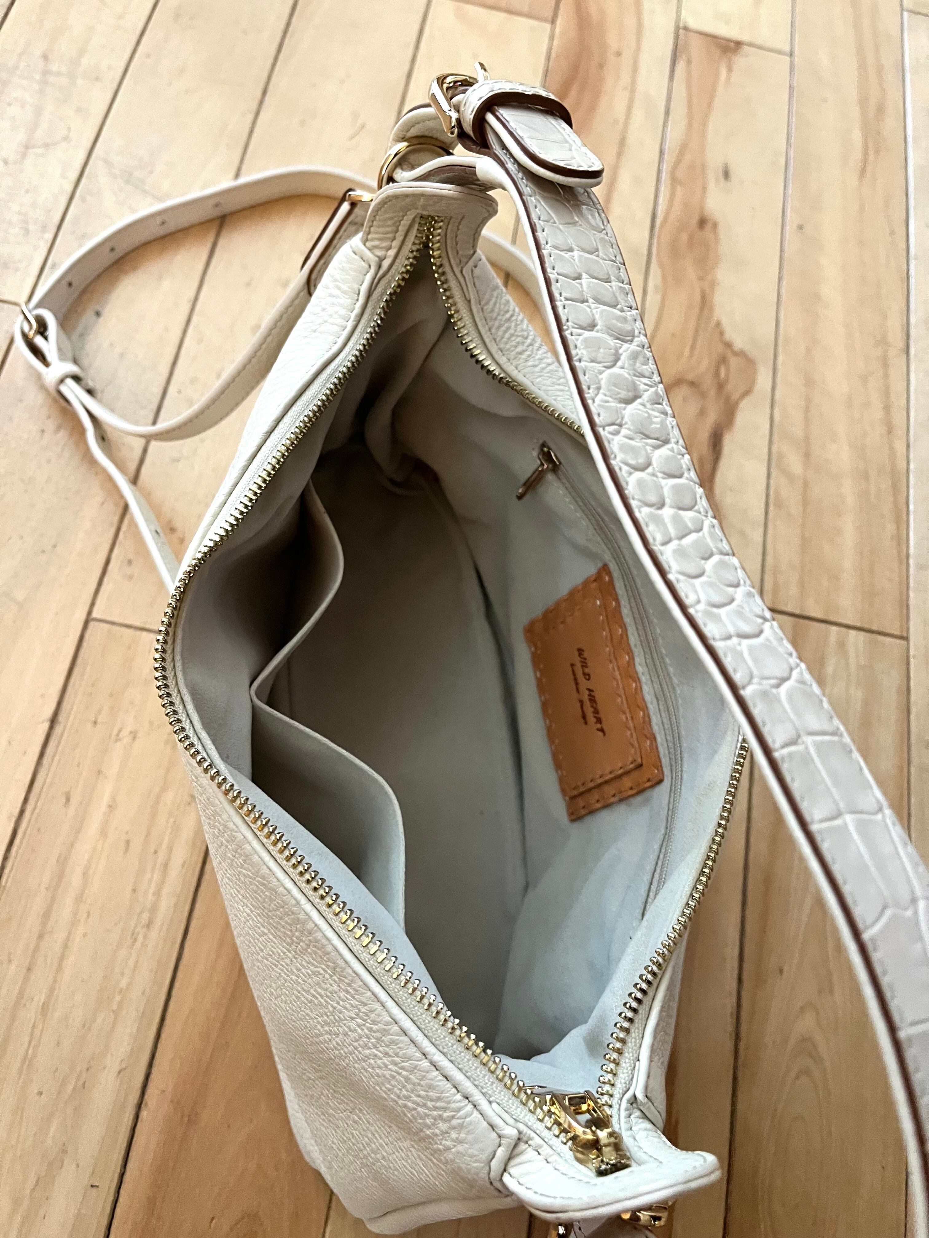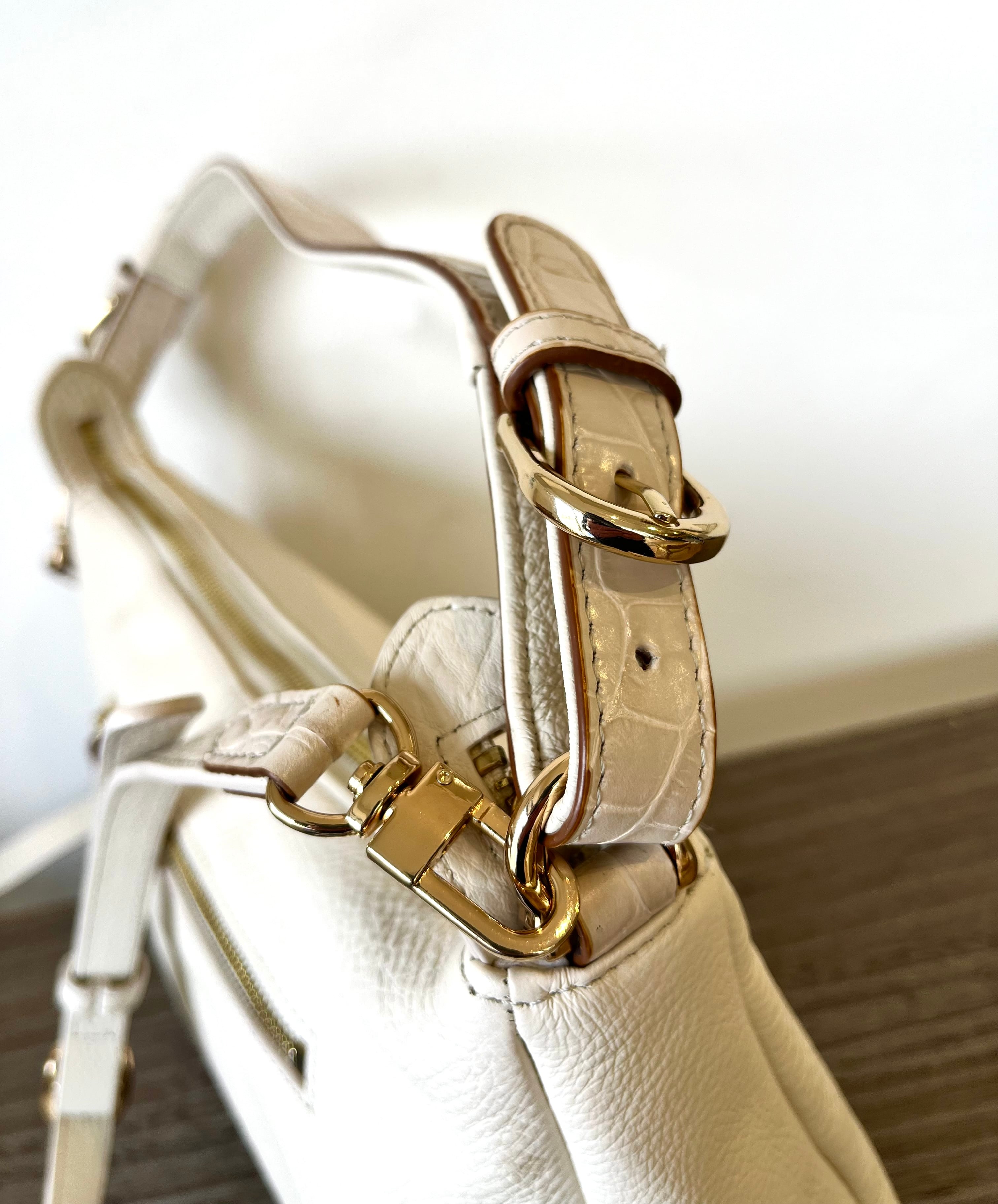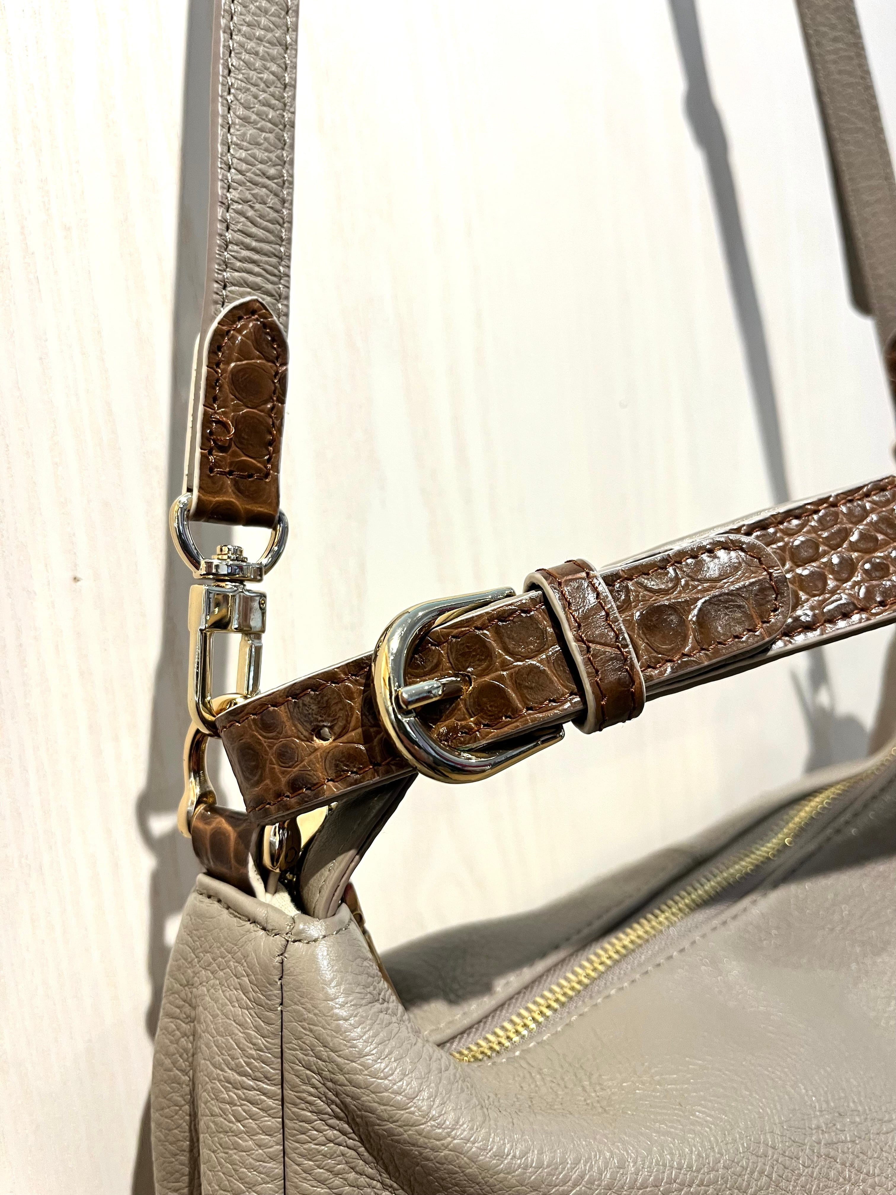 ホワイトとグレーの人気カラーが魅力のカウレザーを使用したワンショルダーバッグです。