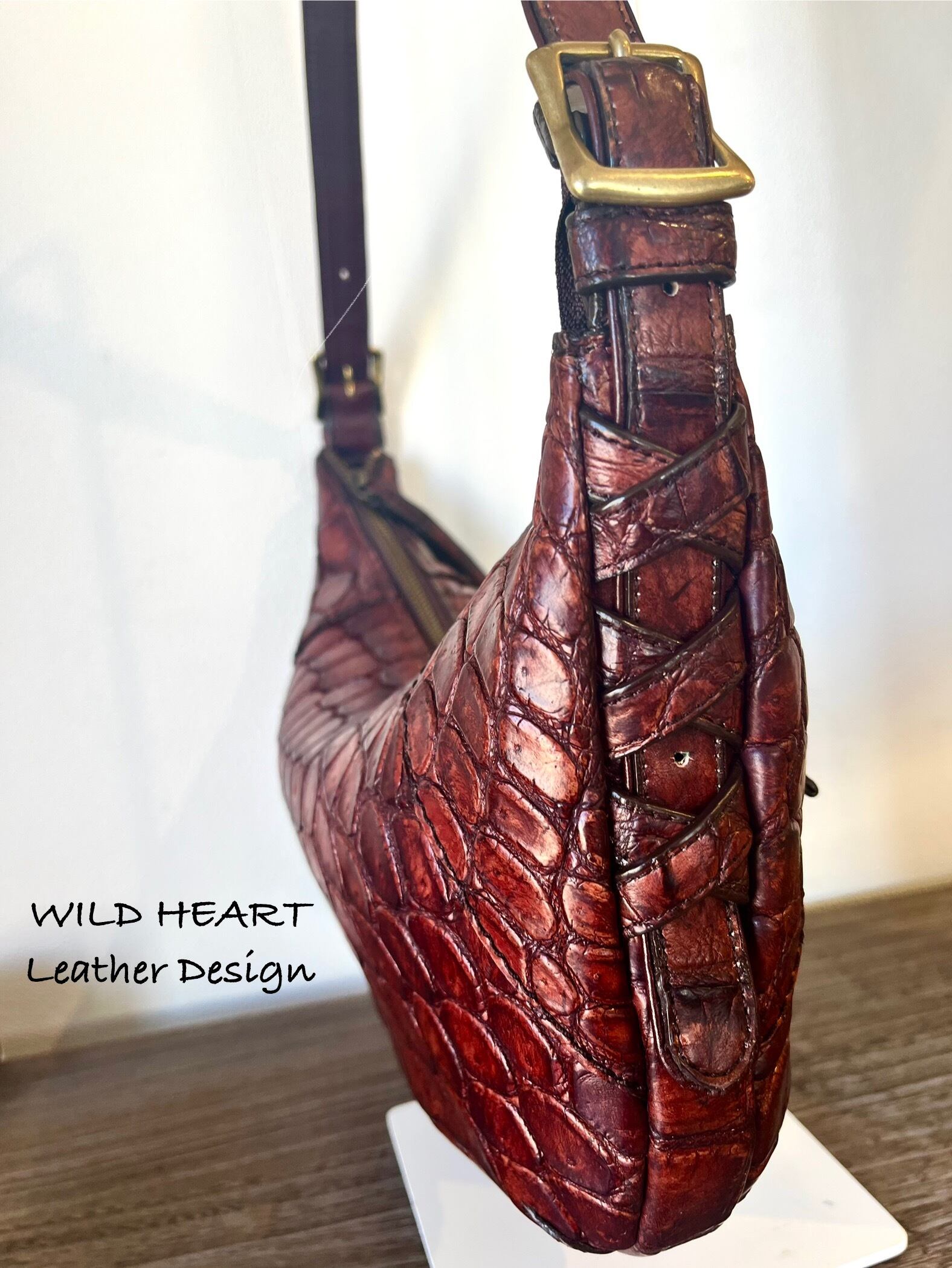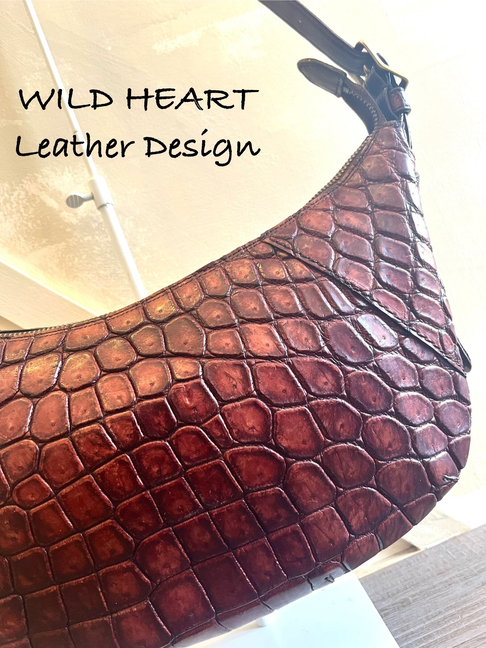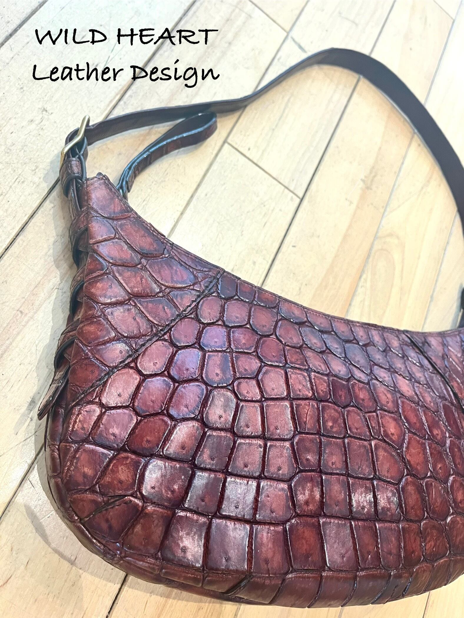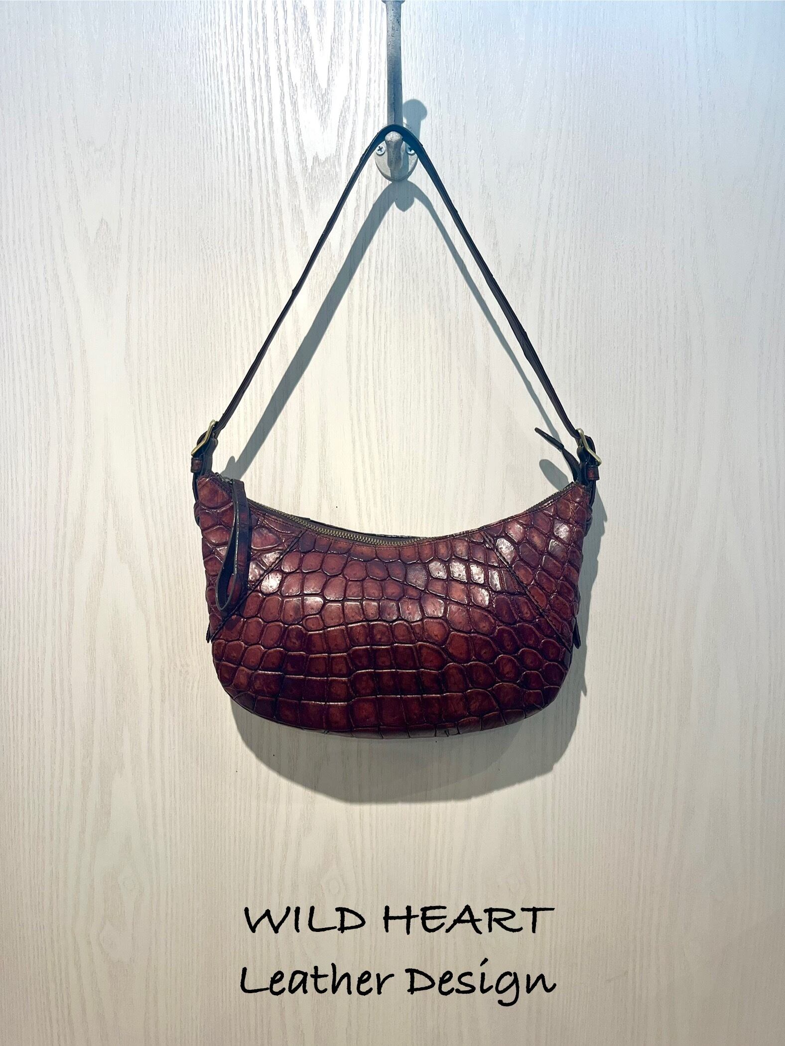 上質なクロコダイルレザーを柔らかく、味出し、アンティーク加工で仕上げた1点ものです