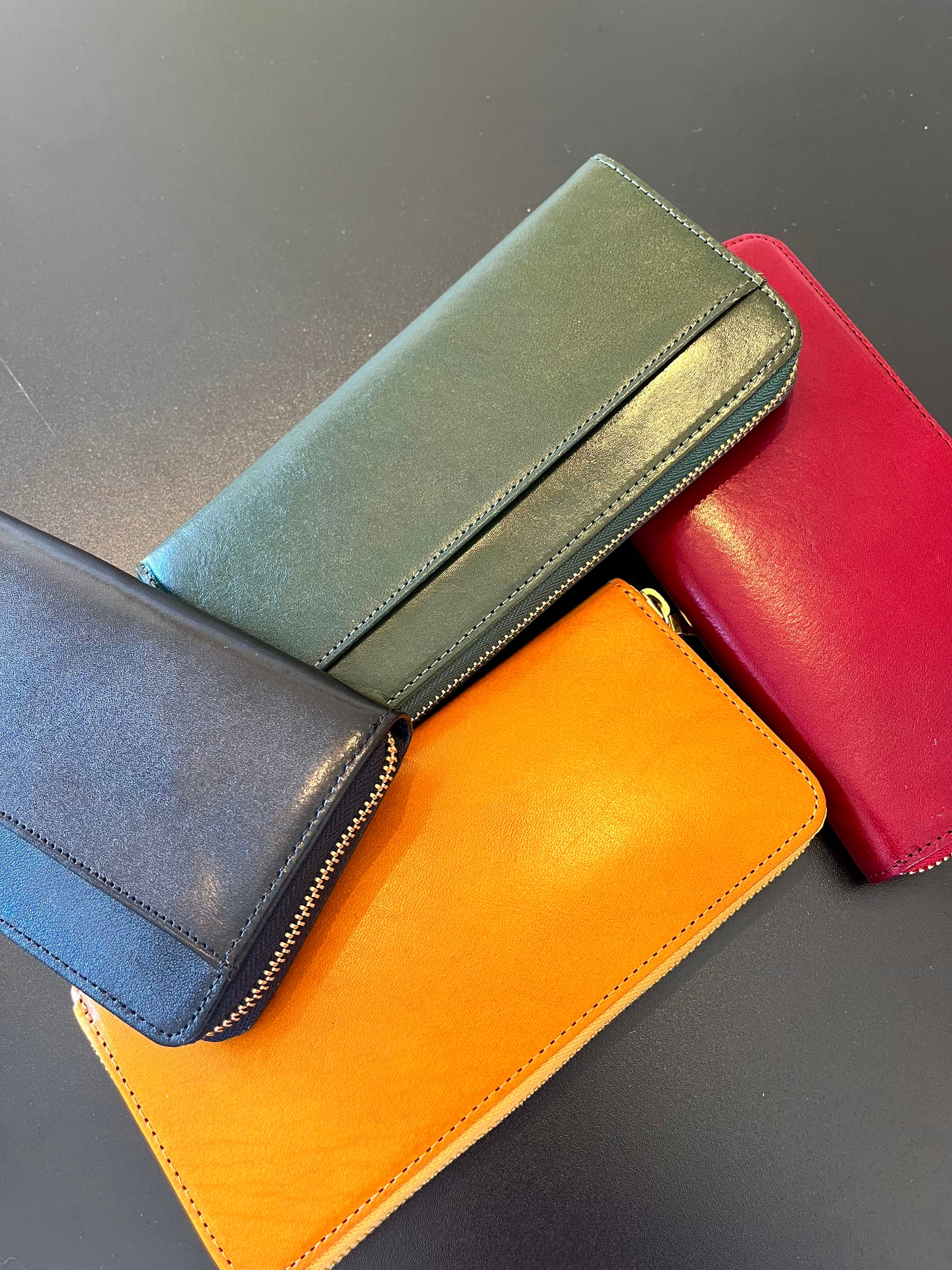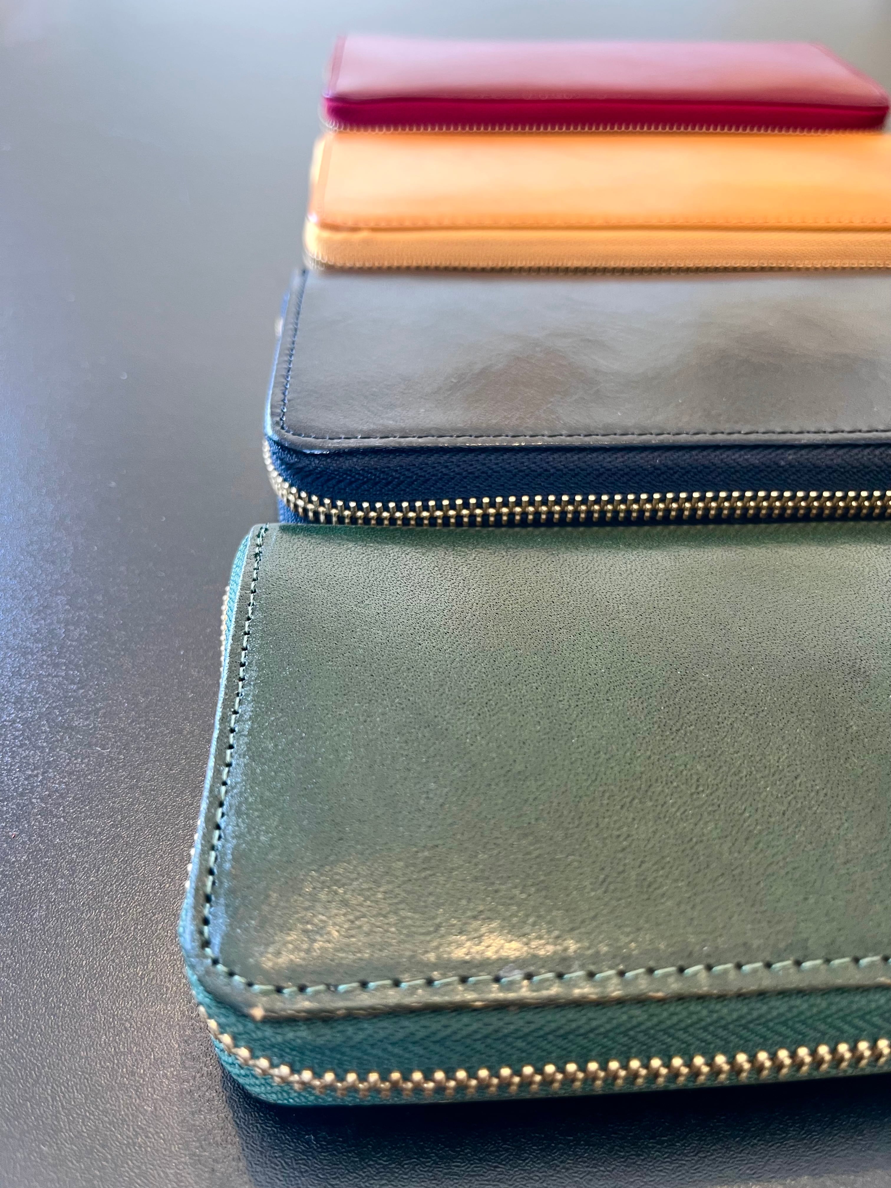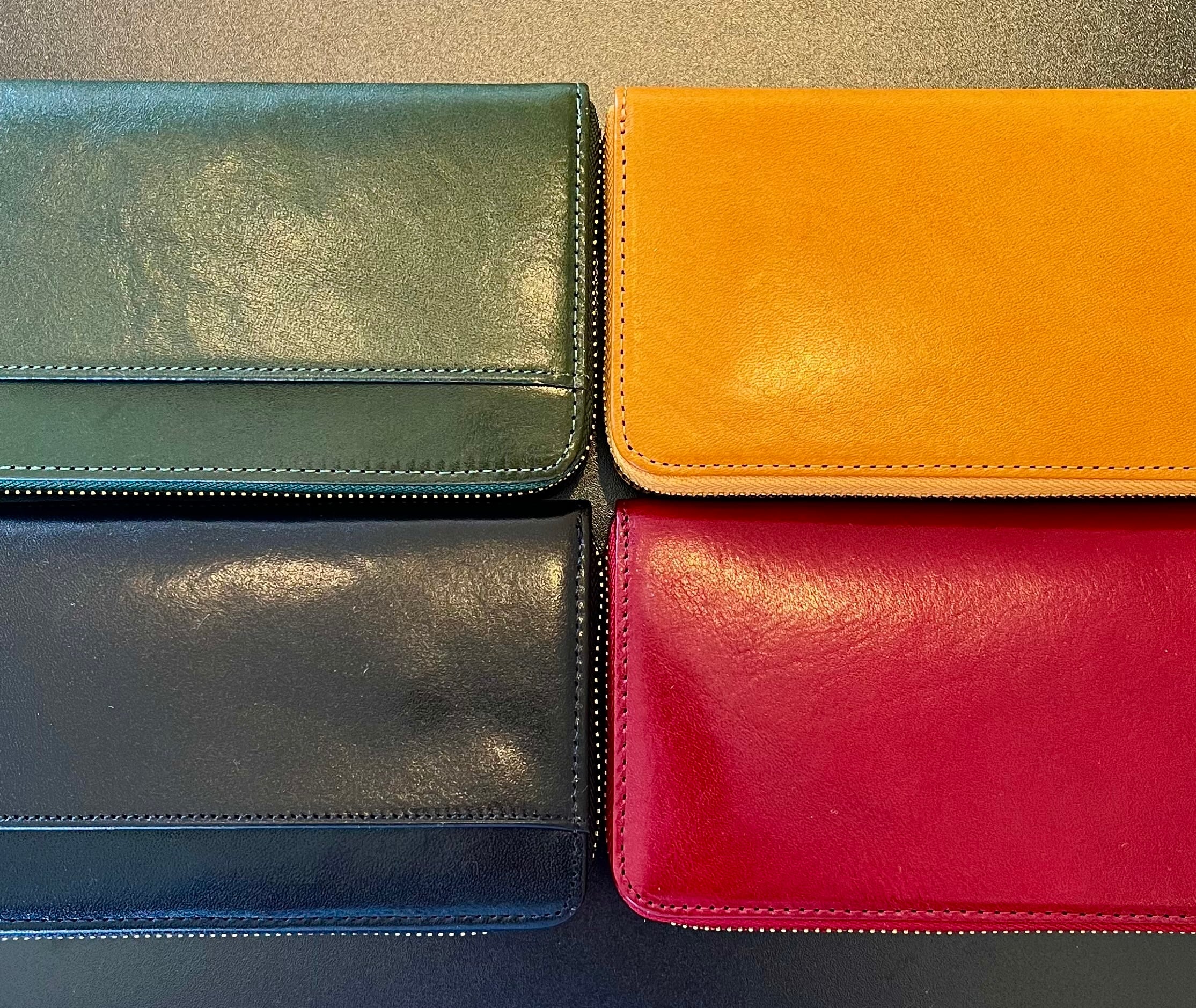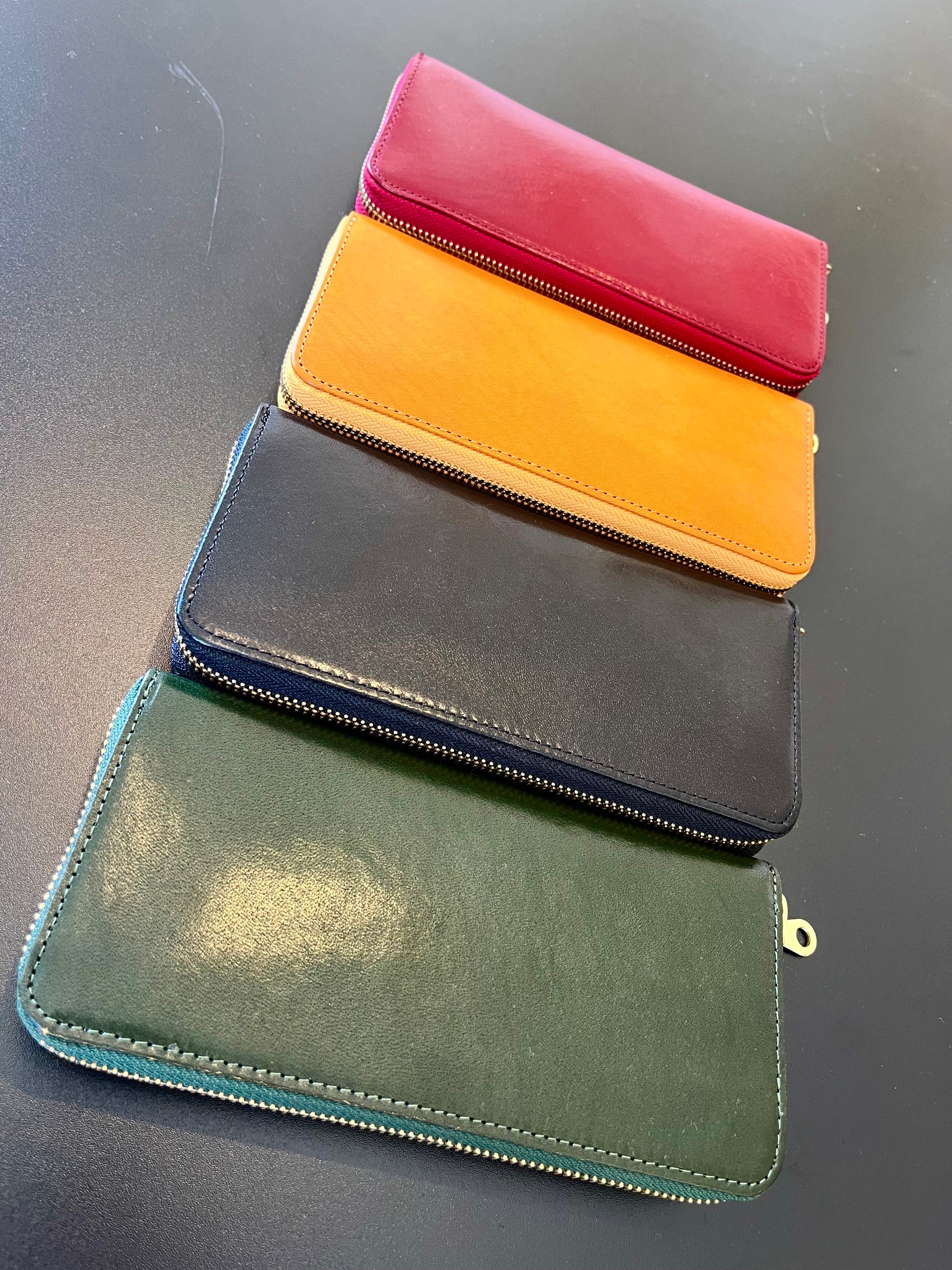 選べる4カラー、シンプルなデザイン、使いやすく収納力もあり信頼のイタリーレザーを使用したロンウォレットです。