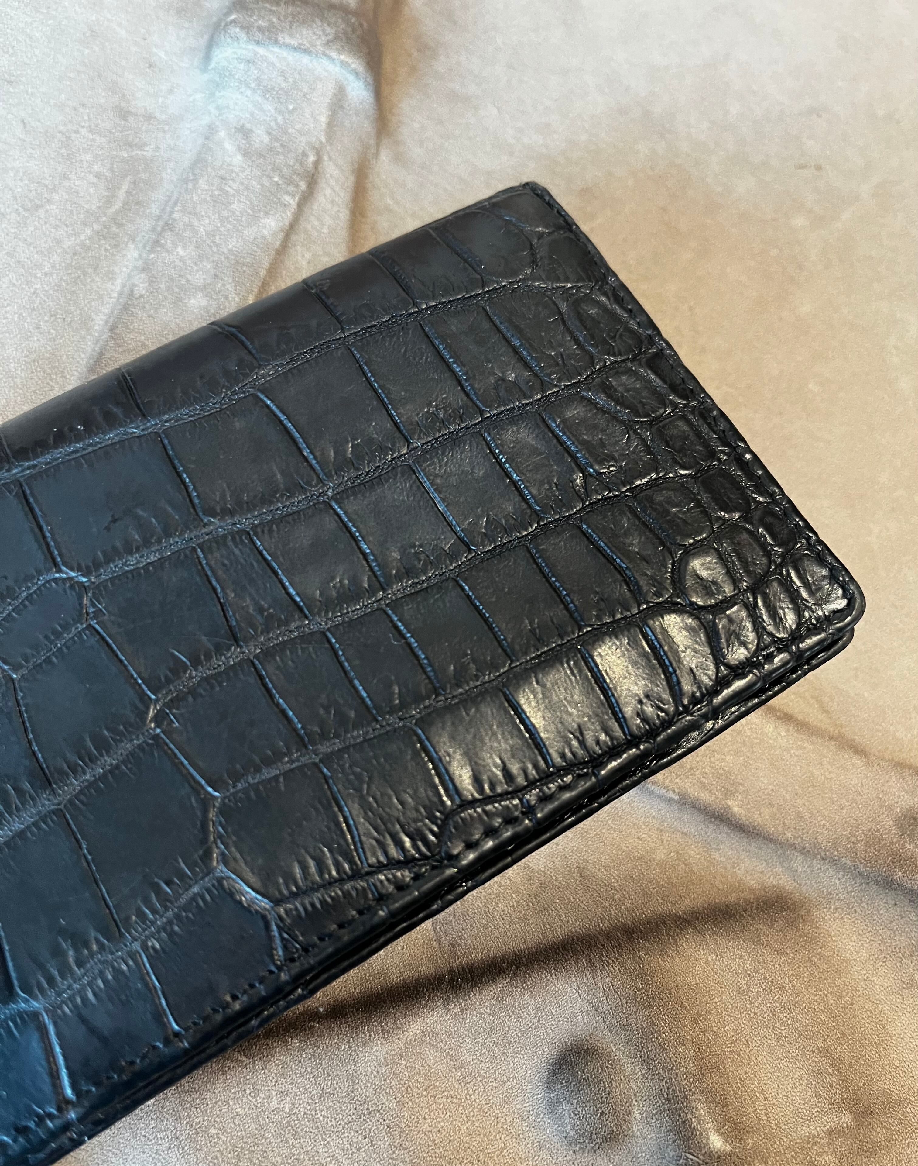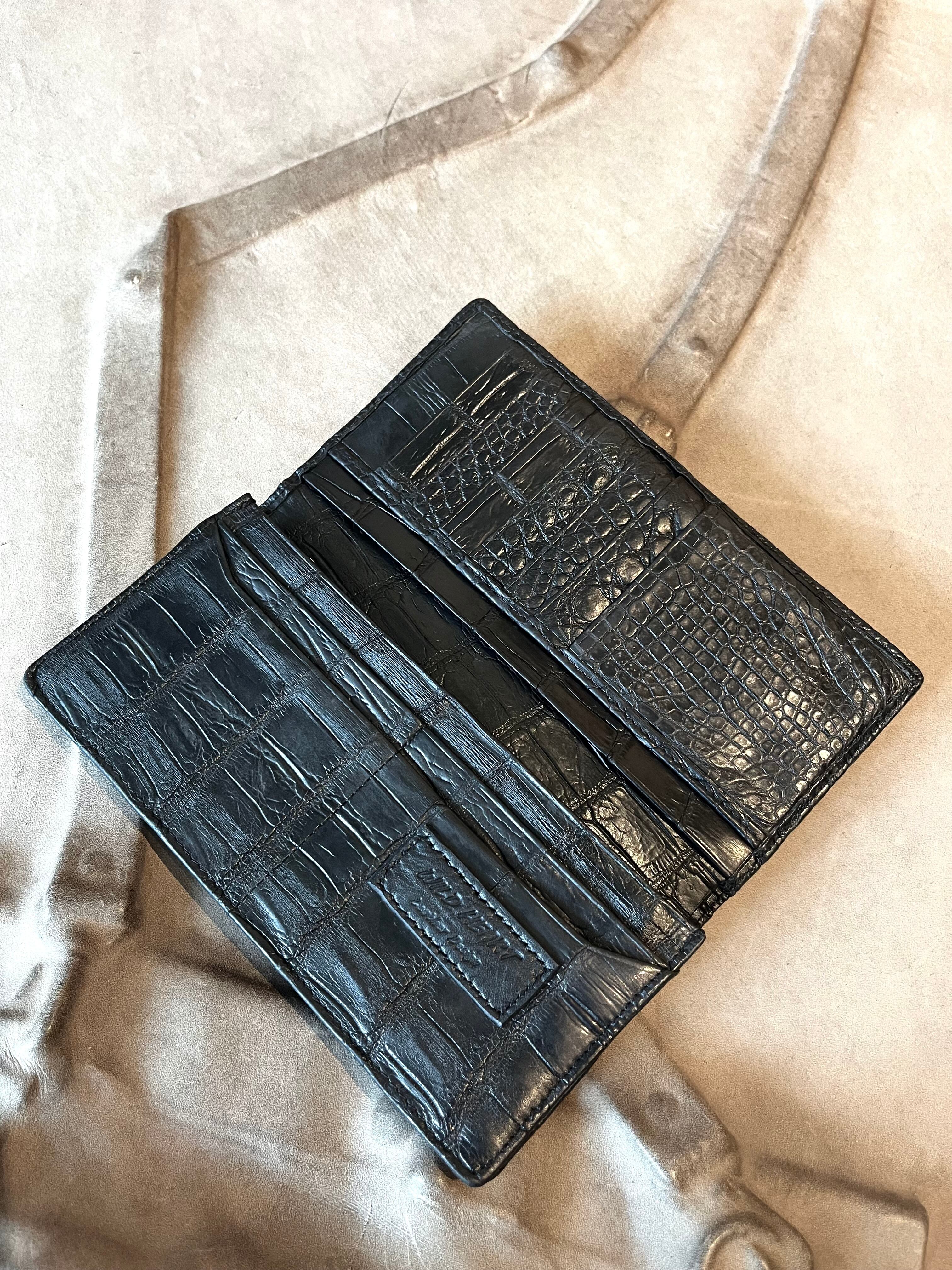 外も内もクロコダイル、無双仕立ての贅沢なクロコダイルを使用した2つ折りウォレットです。エレガントなデザインと高級感あふれる素材が特徴で、マットな質感から美しい光沢へとエイジングされて行きます。