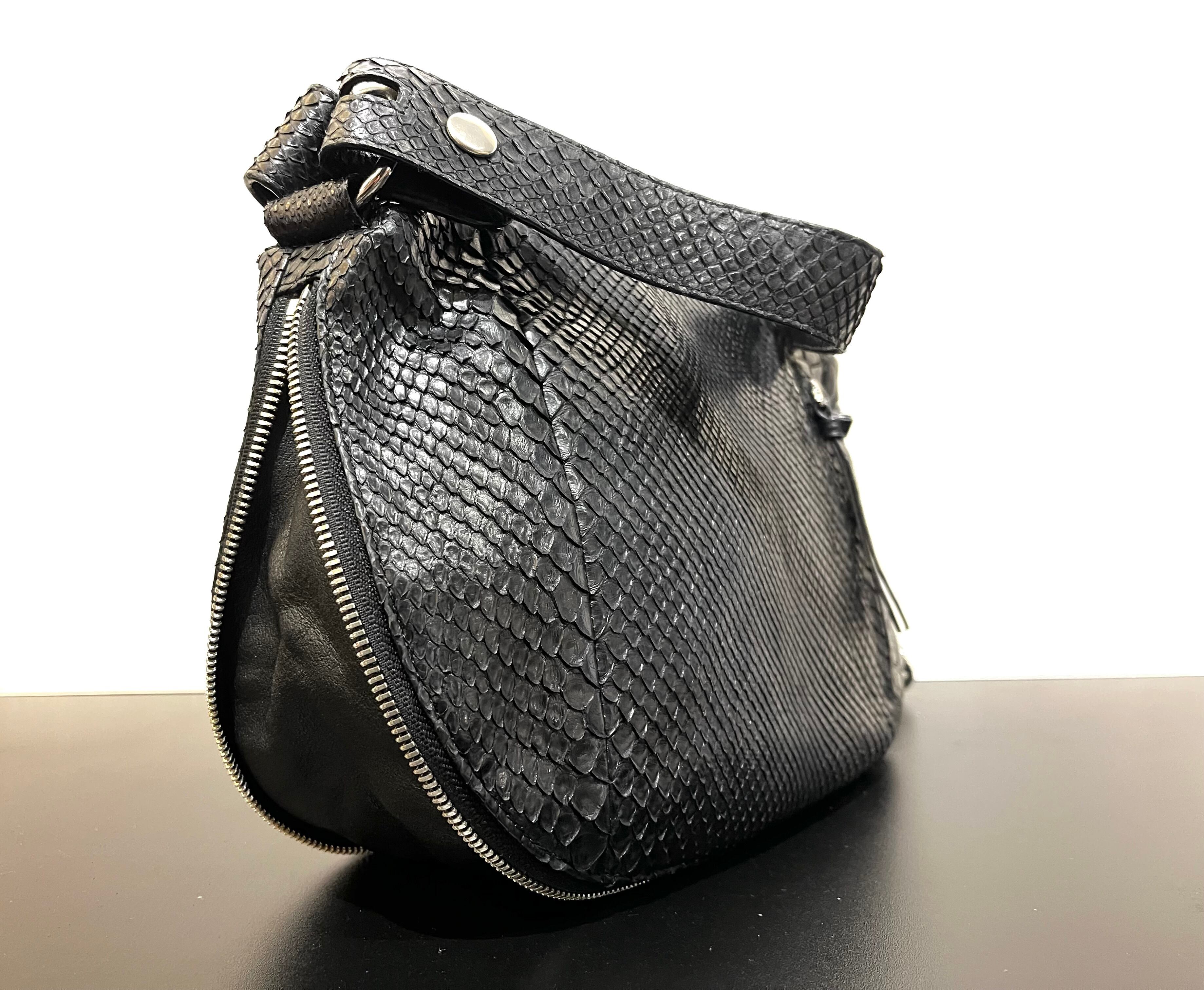 パイソン×クロコダイル ジッパー ショルダー・ハンドバッグ