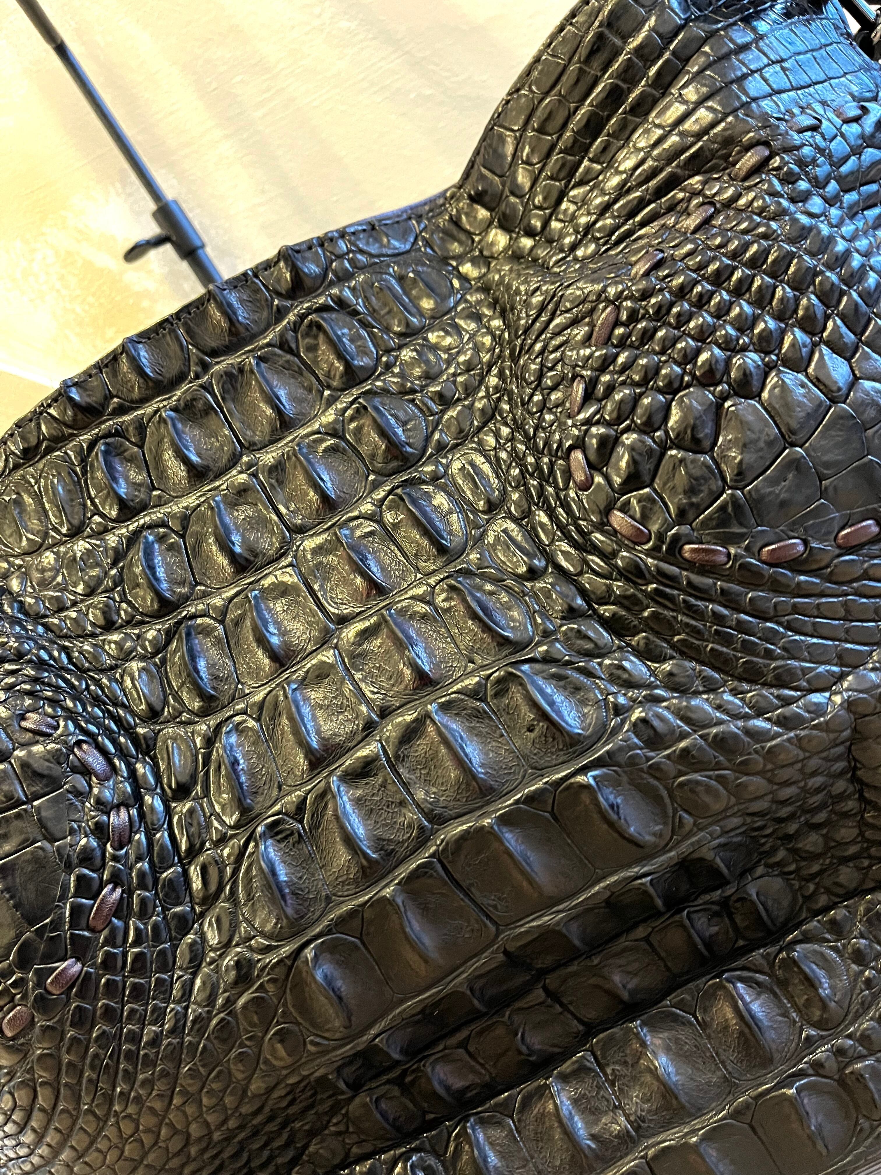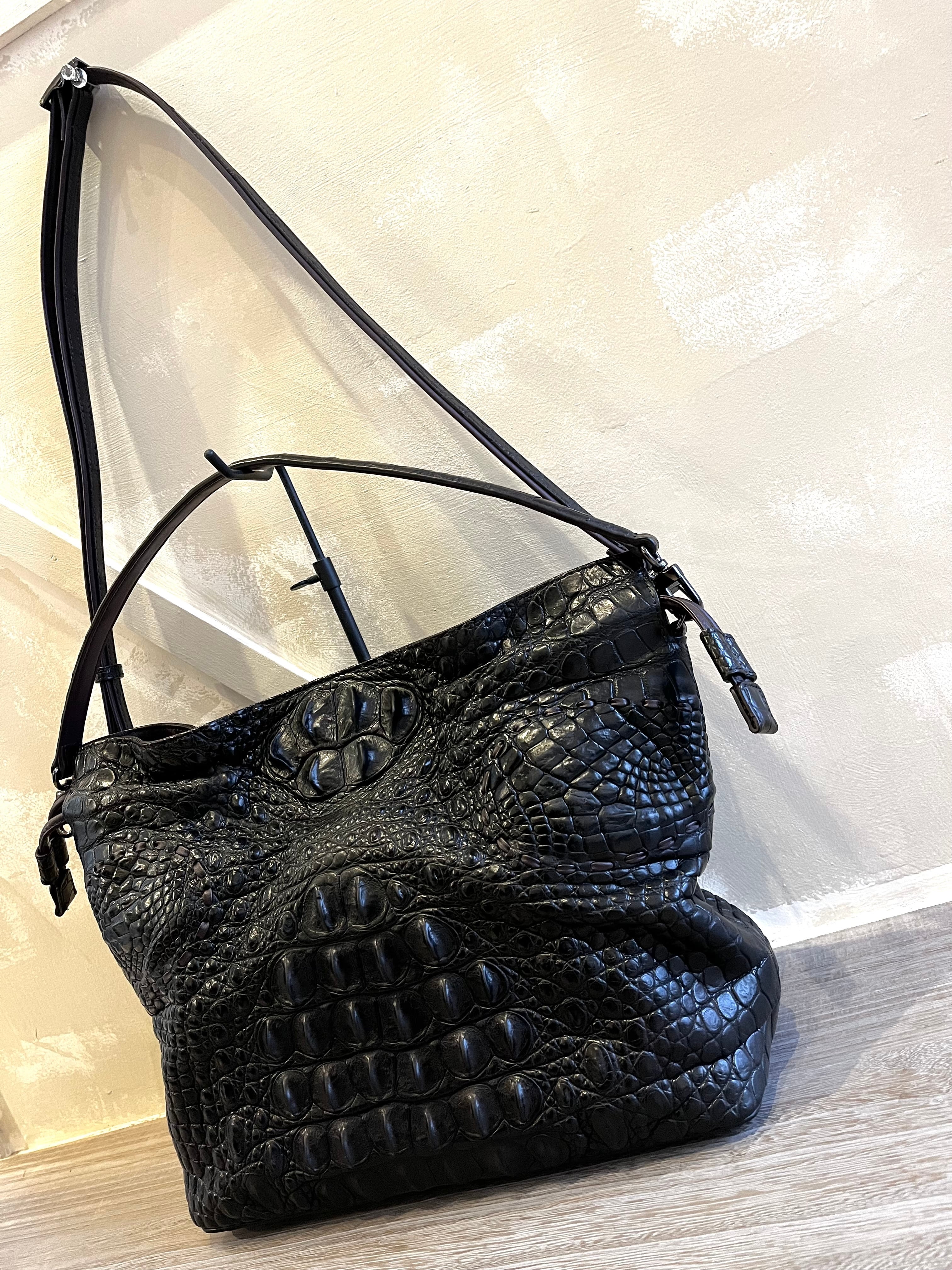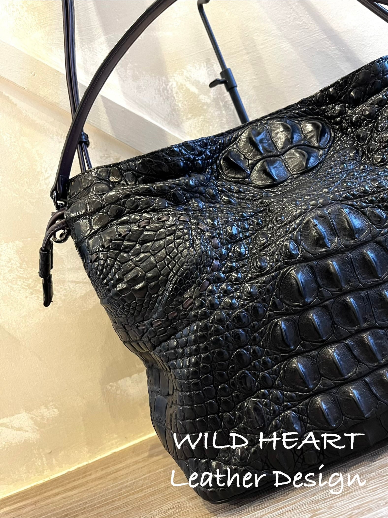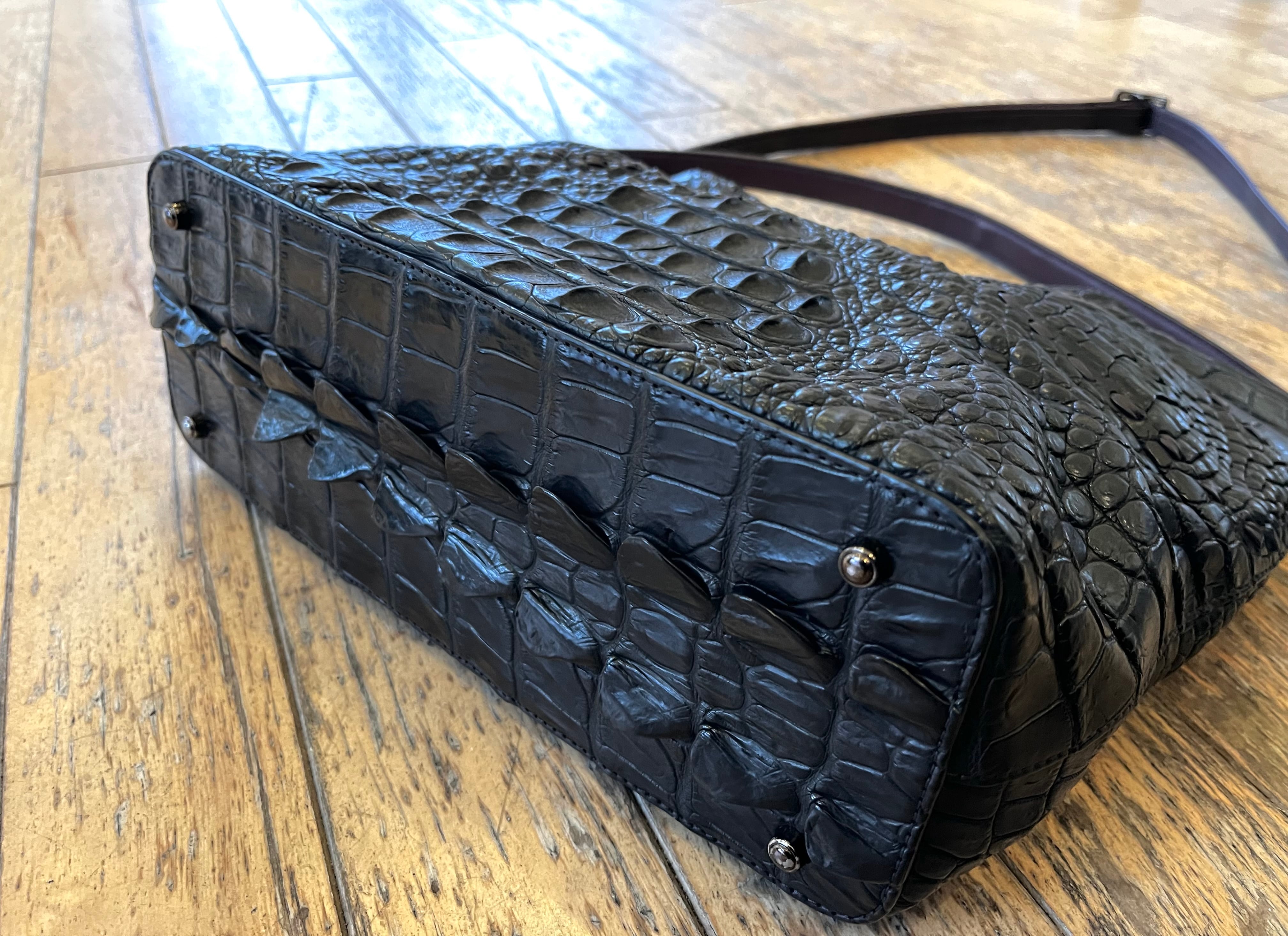 素材をそのままデザインとし、特別な存在感を放つクロコダイルホーンバックを使用した まるで『ゴジラ』の革?かのような表情を魅せるダブルハンドルショルダーです。