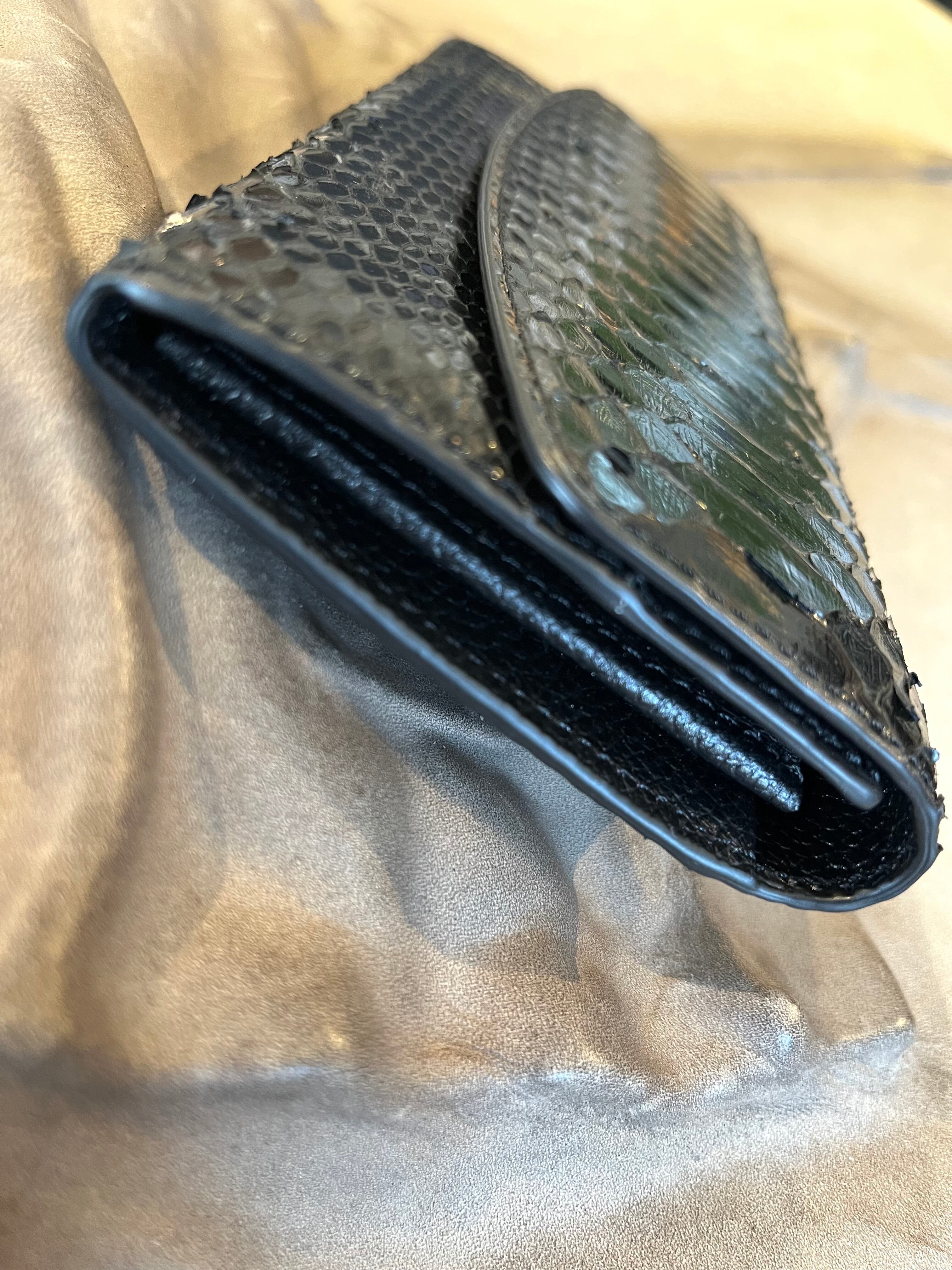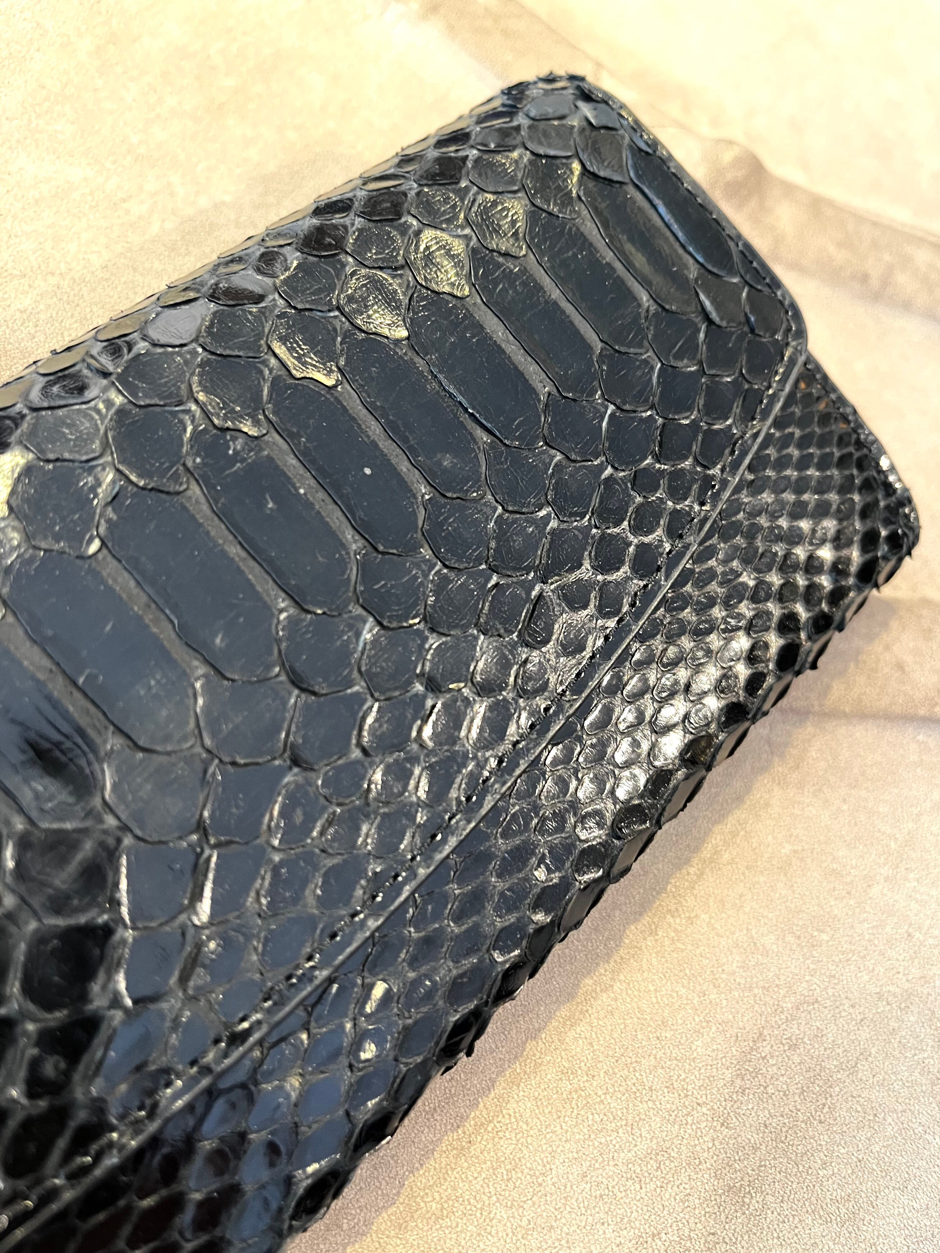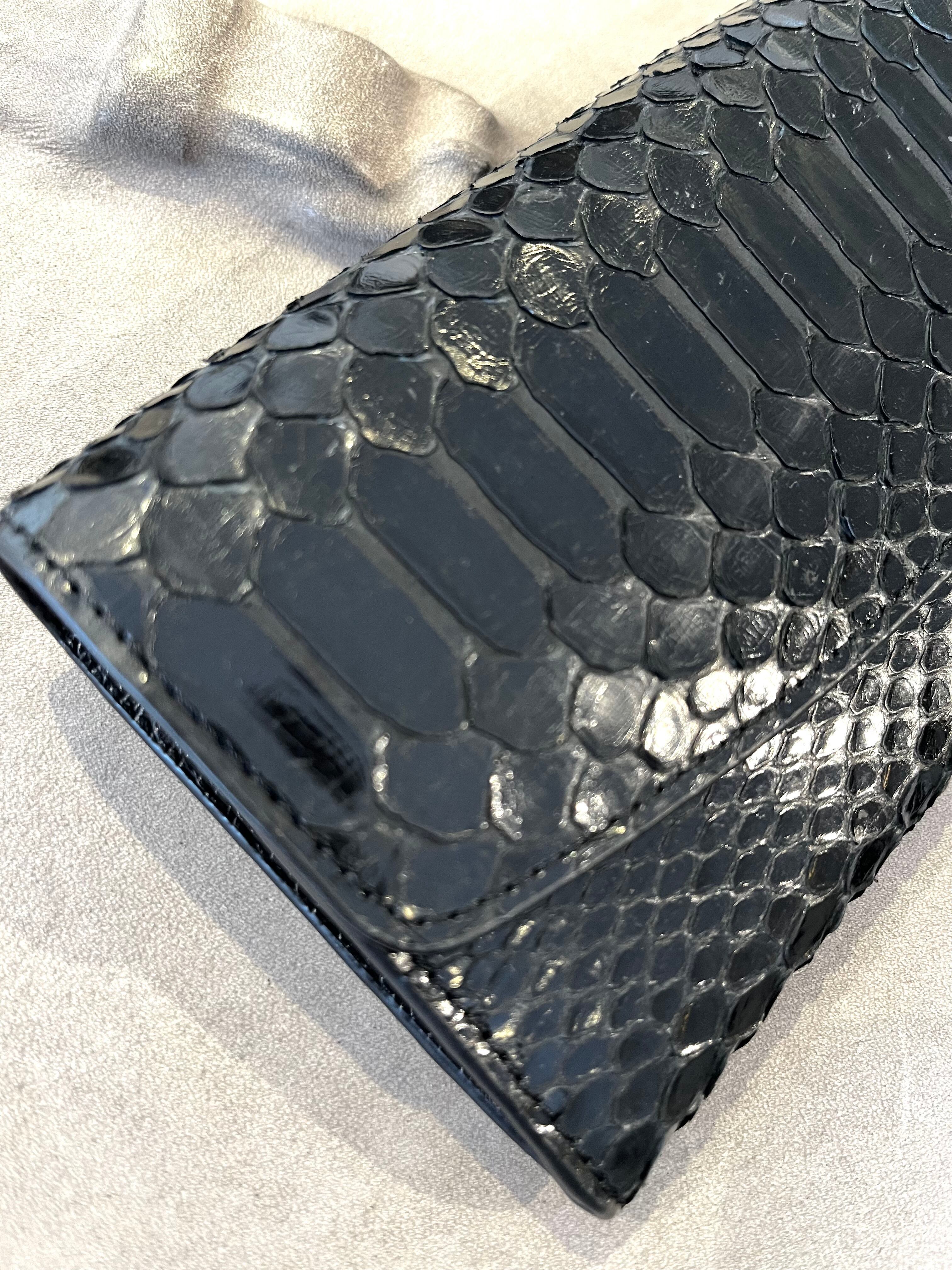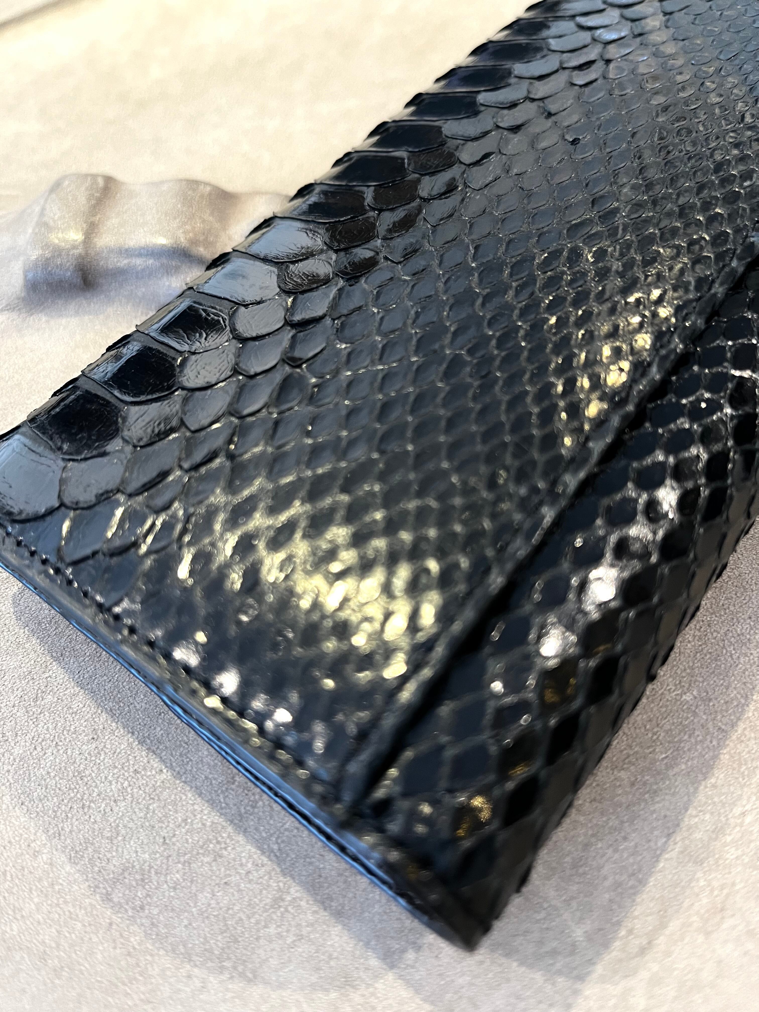 光沢のあるパイソンレザーを使用したフラップタイプのロングウォレットです。洗練されたデザインは、収納力にも優れ、必要なアイテムをしっかりと整理できます。日常使いはもちろん、特別な場面でもあなたのスタイルを一層引き立てます。光を受けて美しく輝くパイソンの風合いが、持つ人の魅力を引き出すことでしょう。