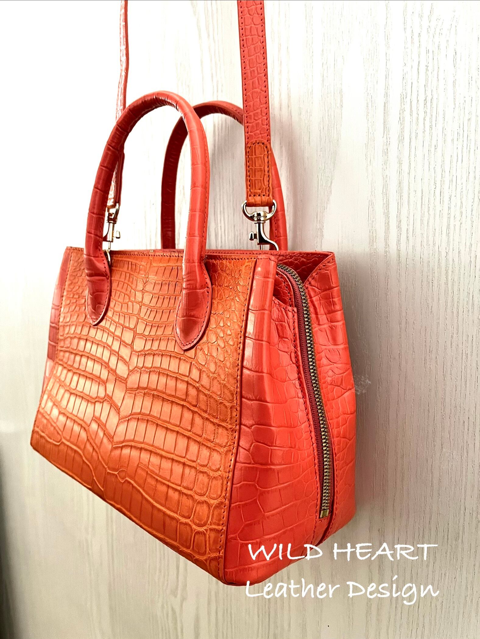 クロコダイル コンパクト ハンド・ショルダー orange