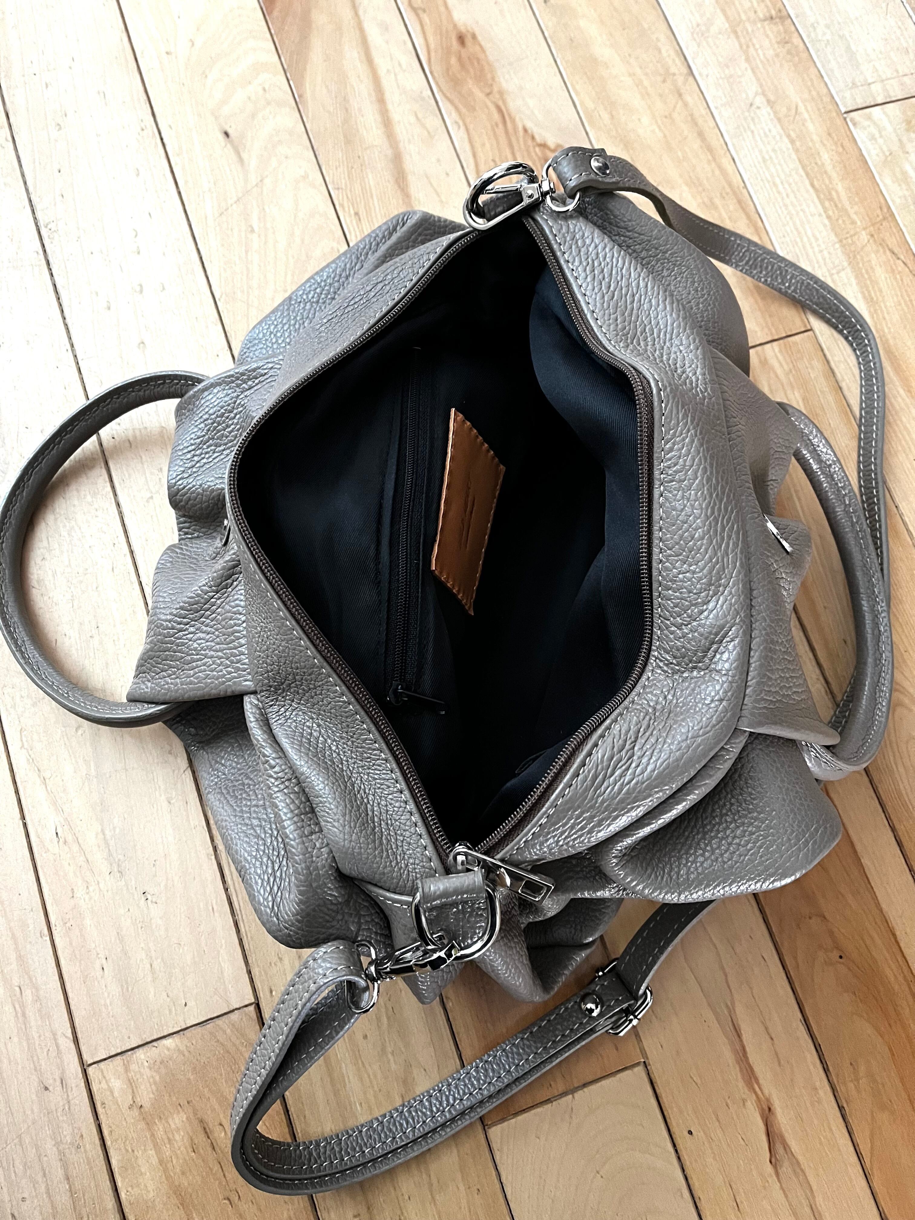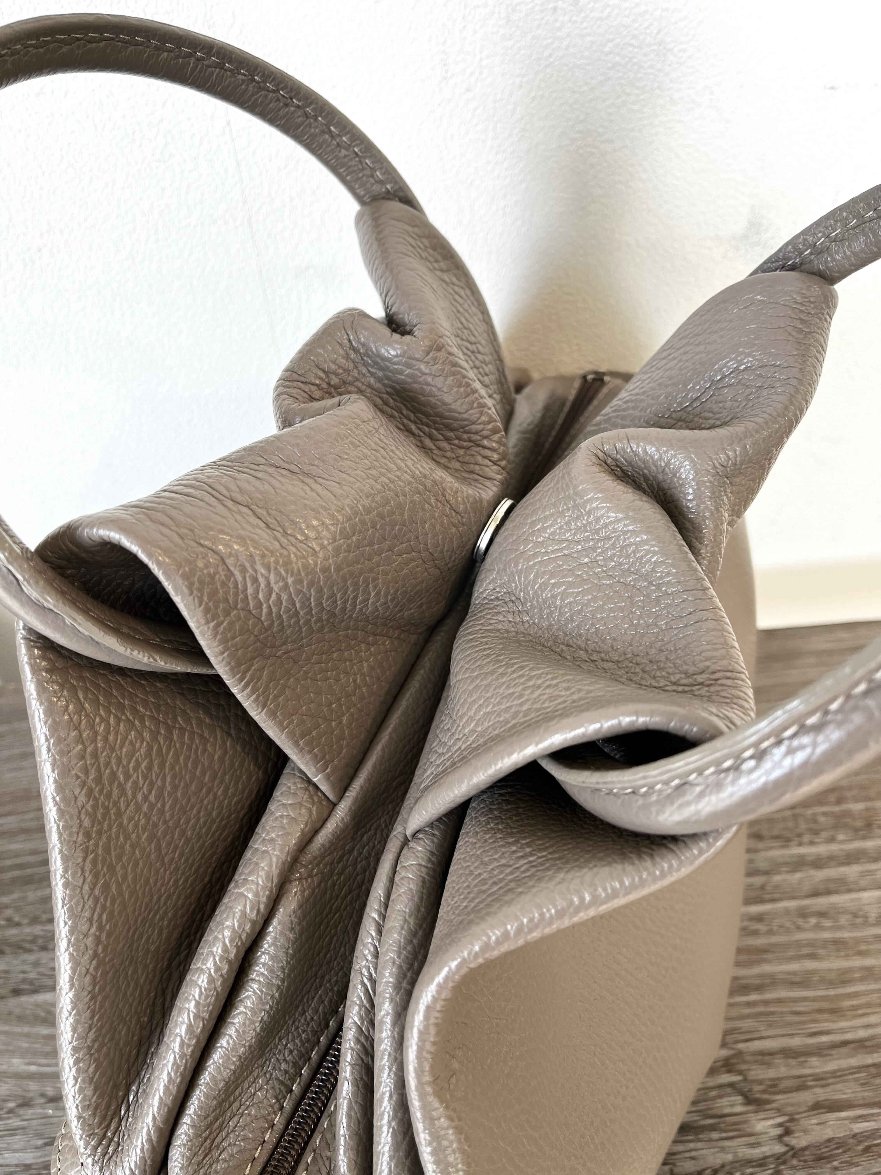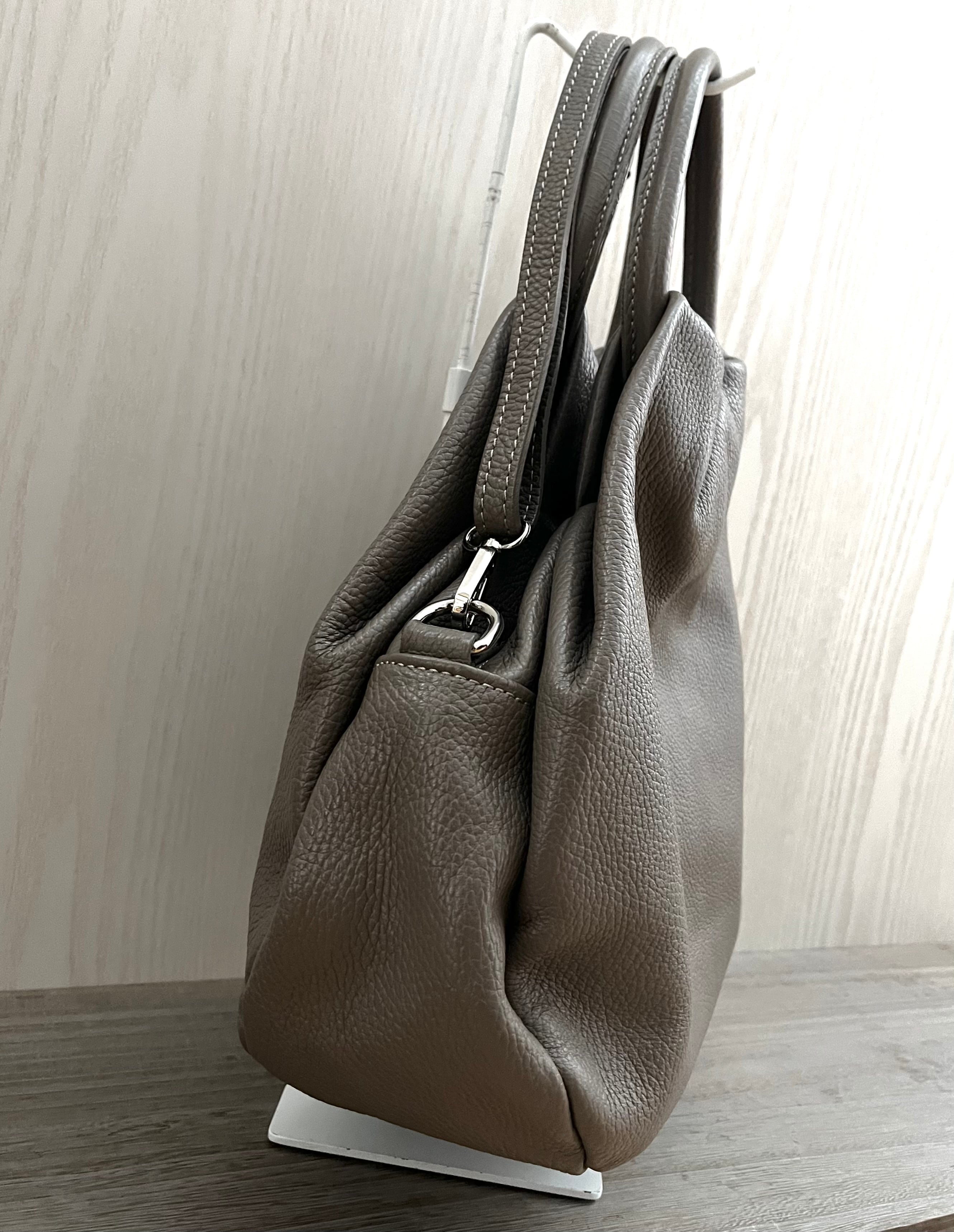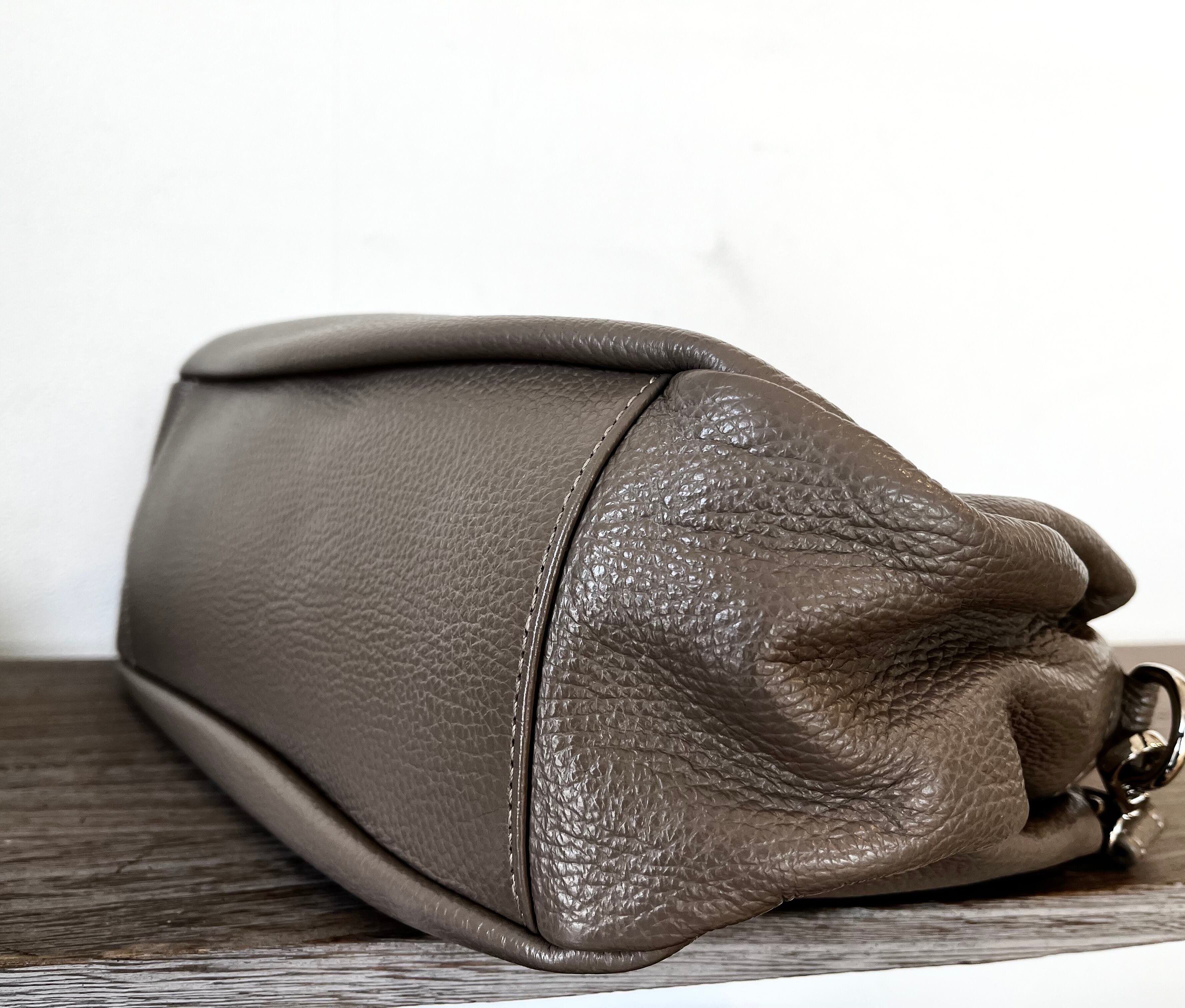丸っこくコロンとしたカタチが特徴的なシュリンクカウレザーの2wayバッグです。その独特のフォルムと柔らかい質感は、日常使いから特別なシーンまで幅広くフィットし、あなたのスタイルに華やかさを添えます。持ち方を変えることで、様々なコーディネートを楽しむことができるアイテムです!シュリンクカウレザーのしなやかさが、持つ人の魅力を一層引き立てます。