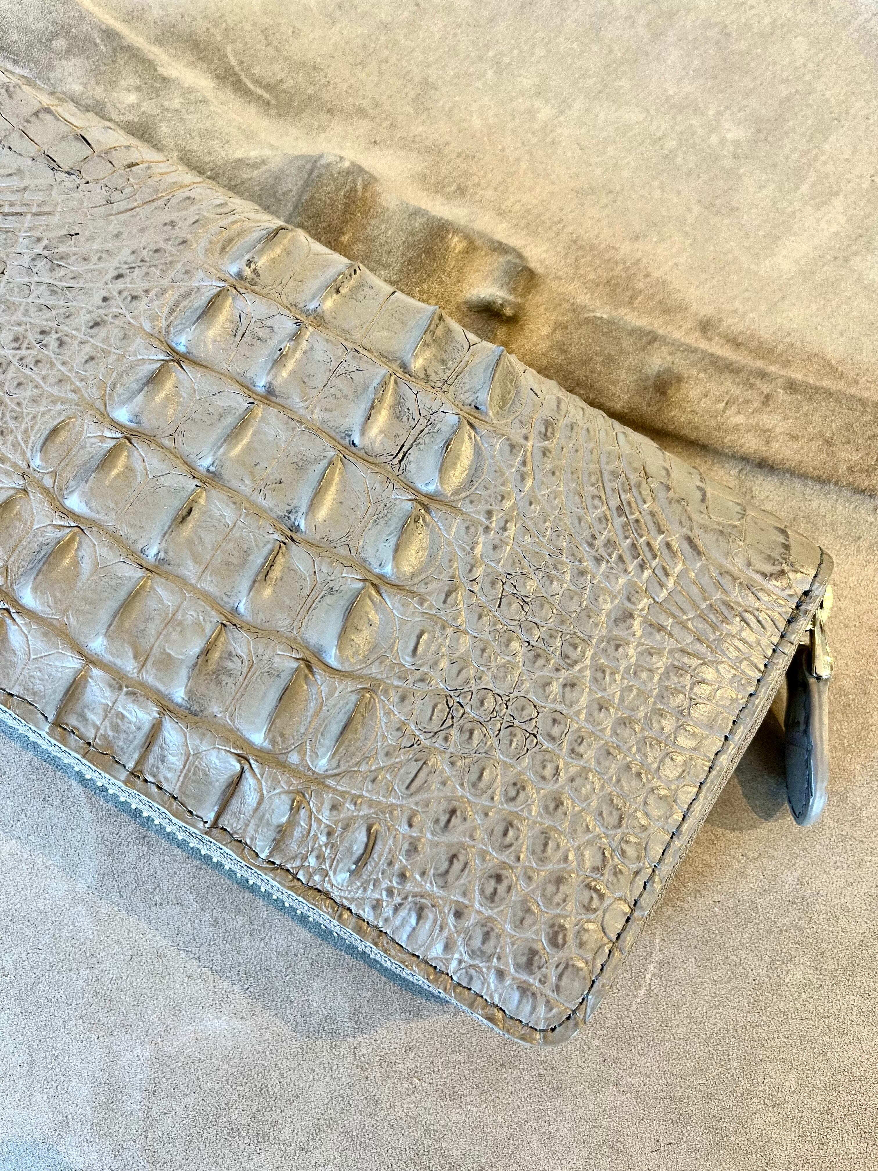 こちらのクロコダイルホーンバックは凹凸も小さめで、ややソフトな仕上がりです。
