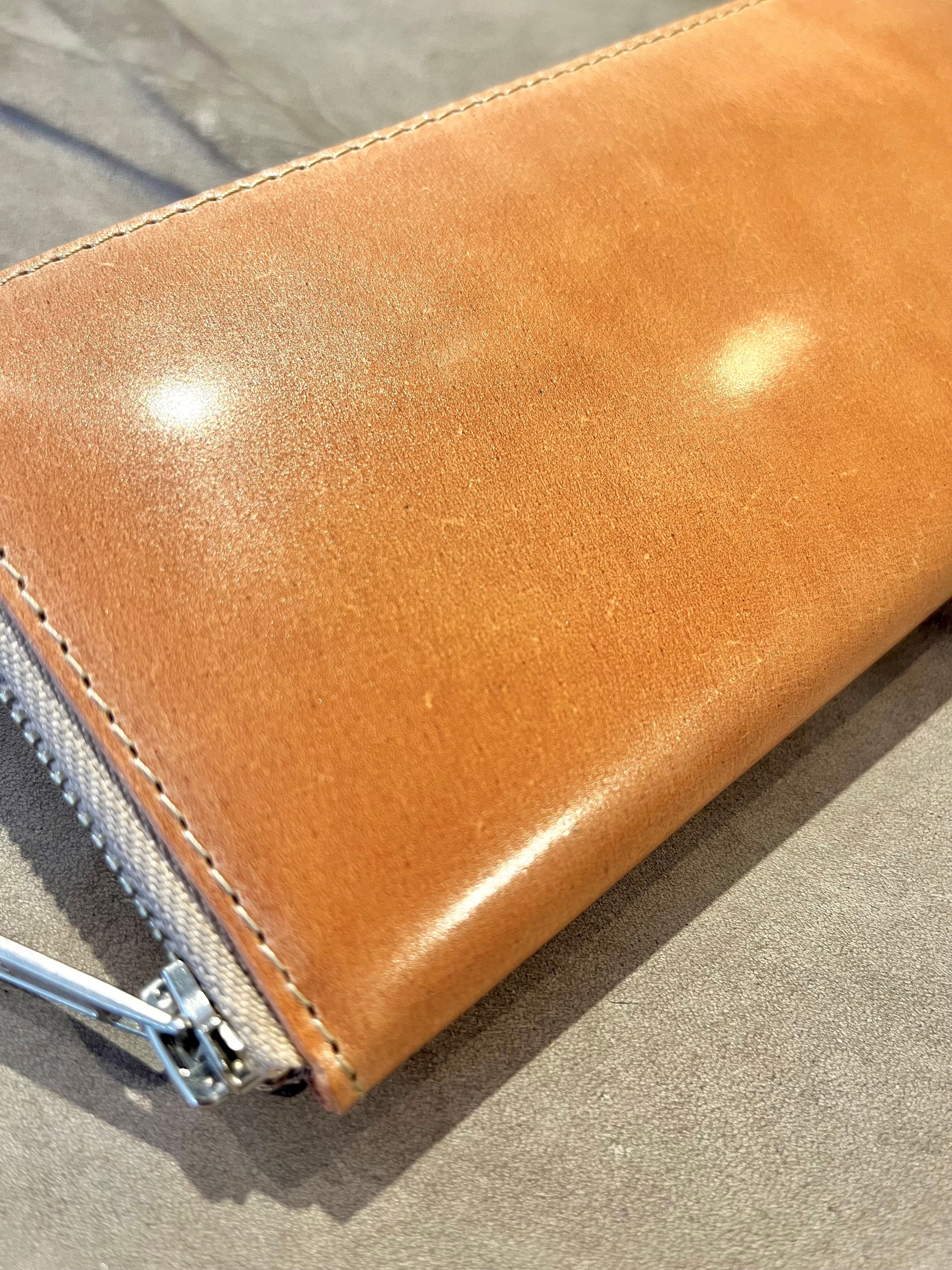光沢が美しく、経年変化を楽しむことができるのが最大の特徴。ビジネスシーンやカジュアルスタイルにも見事にマッチします。 長財布
